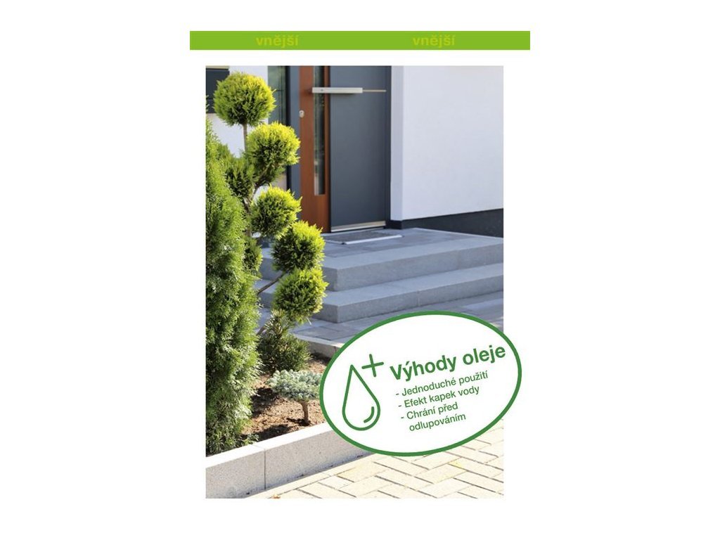 Na bázi přírodních olejů - mikroporézní,vodoodpodivý a odolný vůči znečištění a tvorbě skvrn.