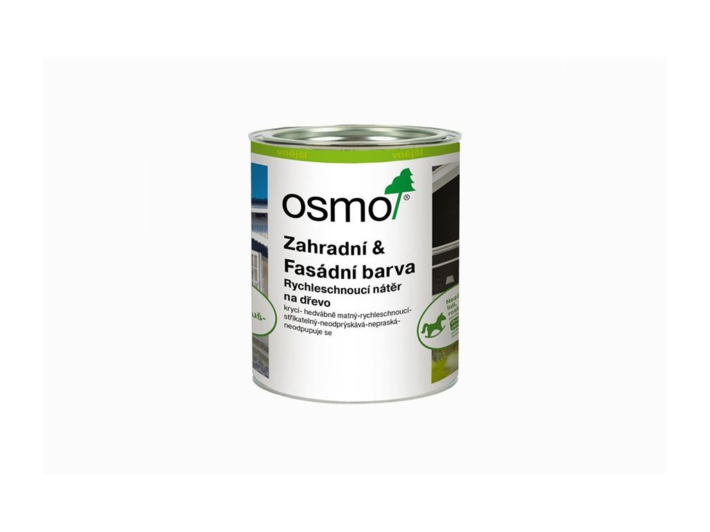 Venkovním povětrnostním podmínkám a UV- záření odolný krycí nátěr na dřevo pro venkovní použití. Osmo Zahradní a fasádní barva je prodyšná a odolná vůči vodě. Uschlý nátěr je nezávadný pro lidi, zvířata a rostliny.