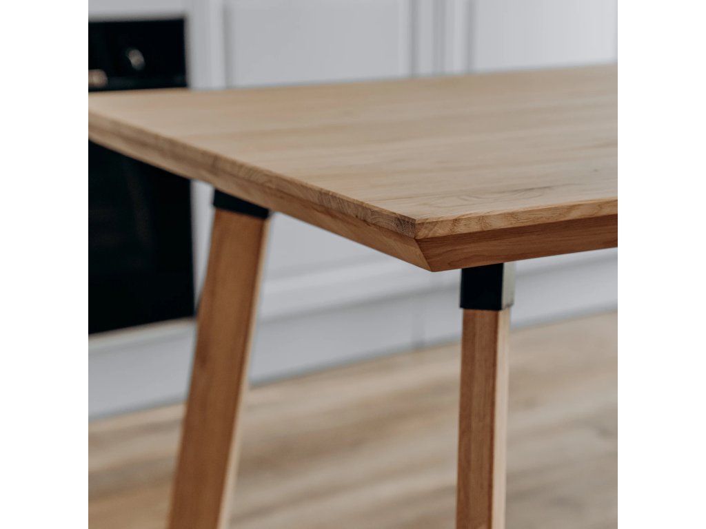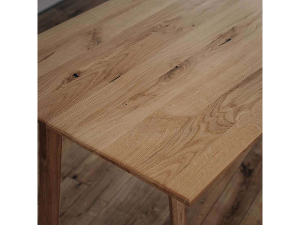 - Přírodní krása a odolnost: Dub je materiál, který s věkem zraje do krásy. Povrch stolu je ošetřen špičkovým přírodním olejem Saicos, který chrání dřevo před vlhkostí a opotřebením, zatímco zdůrazňuje jeho přirozenou strukturu.