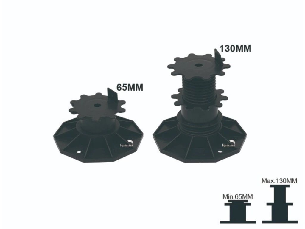 Rektifikační terče slouží k rychlé a snadné montáži dřevěné nebo WPC terasy, pomohou s přesným nastavením správné výšky a prodlužují životnost terasy. Terč má dva závity: jeden se nastavuje pomocí kolečka na těle terče, druhý otáčením hlavy terče. Díky jednoduchému otáčení závitu se lehce docílí správné výšky.