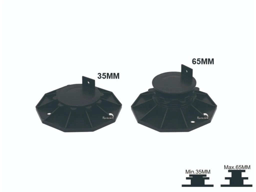 Rektifikační terče slouží k rychlé a snadné montáži dřevěné nebo WPC terasy, pomohou s přesným nastavením správné výšky a prodlužují životnost terasy. Terč má dva závity: jeden se nastavuje pomocí kolečka na těle terče, druhý otáčením hlavy terče. Díky jednoduchému otáčení závitu se lehce docílí správné výšky.