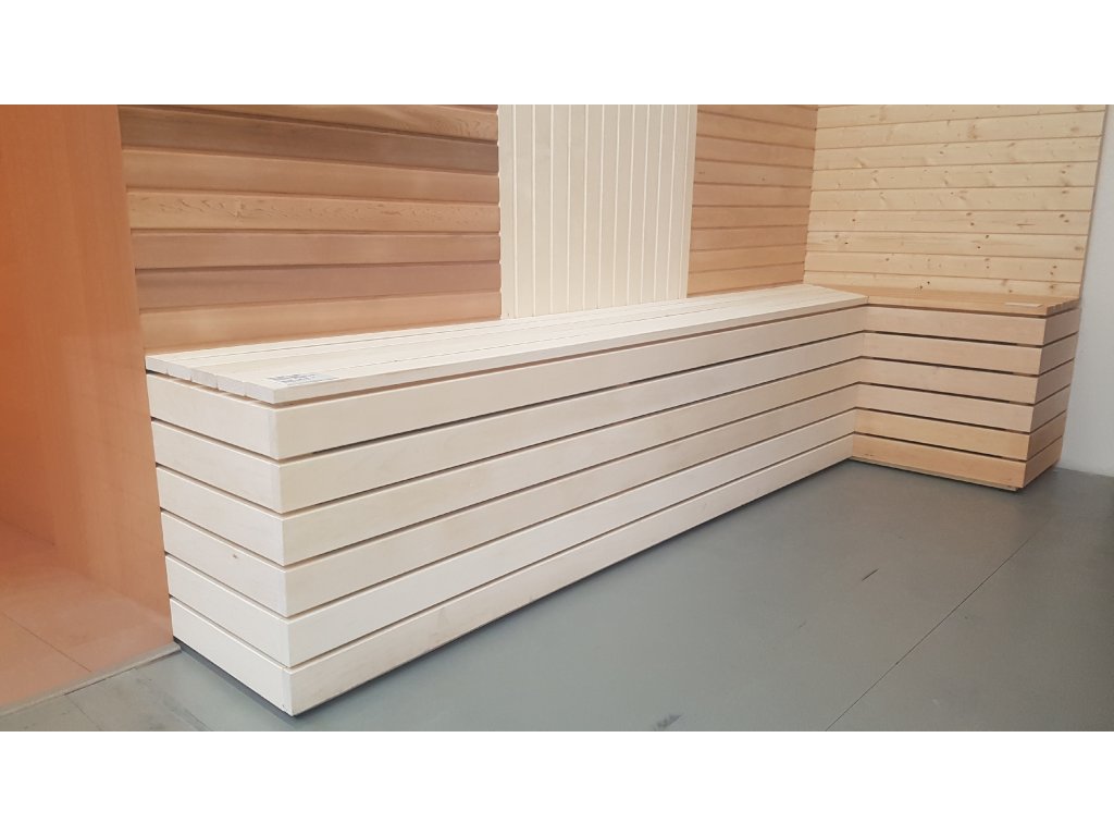 Dřevo pro vnitřní vybavení sauny (lavice, opěrky) se z hygienických a zdravotních důvodů povrchově neupravuje žádným nátěrem. Ponechává se v čistě přírodním, hladce obroušeném stavu.