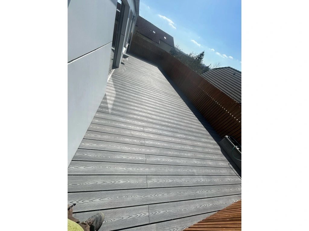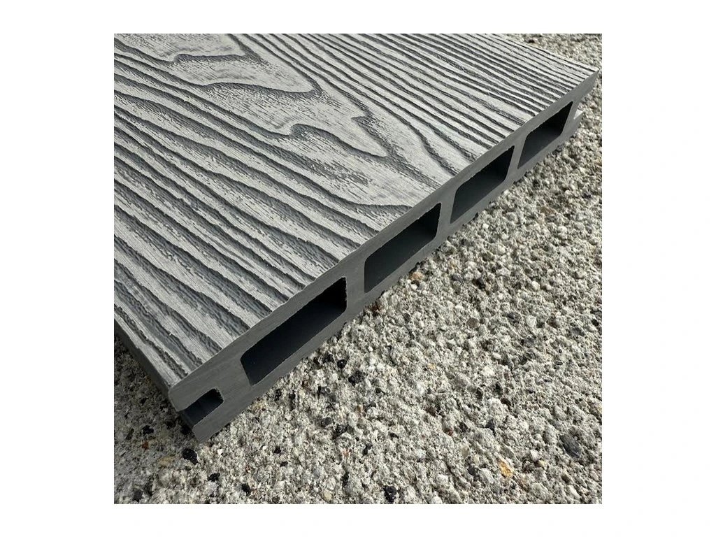 HPC terasové prkno stříbrošedé barvy s kresbou dřeva. Šířka prkna 160 mm, tloušťka 25 mm.