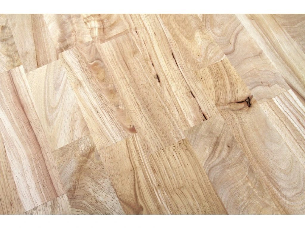 - Vzhled: Výsledkem je velmi dynamická a pestrá "parketová" mozaika. Jsou zde přiznány všechny přirozené znaky dřeva – suky, barevné odlišnosti a drobná očka. Světlá barva dřeviny hevea dává těmto rustikálním prvkům krásně vyniknout a vytváří tak energický a designově zajímavý povrch.