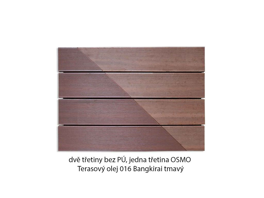 například od značky Osmo Terasový olej 014 Massaranduba nebo Osmo Terasový olej 016 Bangkirai Tmavý.